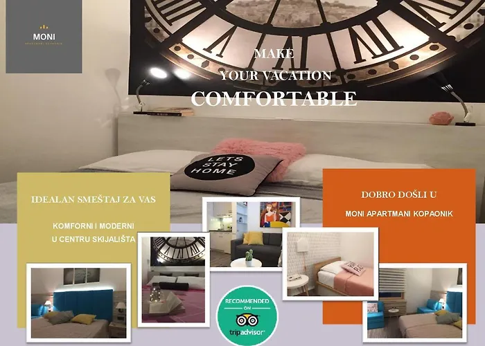 Moni Luxury Apartments lägenhet ligger 130 km från Nis flygplats, och erbjuder 24-timmars säkerhet och valutaväxel. Denna lägenhet är belägen 3 km från Kopaoniks centrum och 850 meter bort från Kopaonik skidcenter.